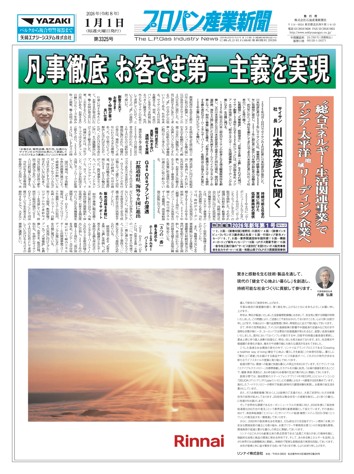 2026.1.1 2026年1月1日(木)発刊のガス業界紙「プロパン産業新聞/2026年元旦号[第3325号]15面」に当社「①アメイジング住宅設備保証(メーカー保証の延長保証サービス/10年・20年保証)及び併用サービス:②アメイジングまるごと設備工事リース③アメイジング生活安心サービス/都市・LPガス事業者→家主様への 販売用」のサービス概要が掲載されました。
